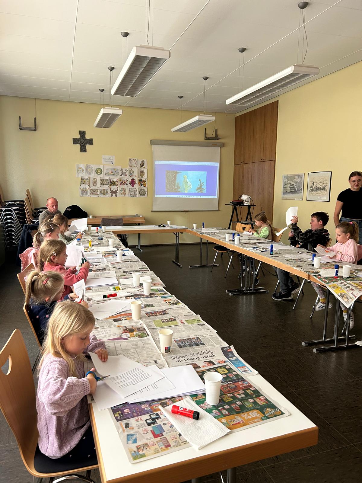 Kinder überlegten gemeinsam, wie sich Mut, Hilfsbereitschaft und Hoffnung kreativ ausdrücken lassen – und ließen diese Gedanken in Bilder und Geschichten einfließen. Jedes Buch wurde zu einem individuellen Kunstwerk, das am Ende stolz mit nach Hause genommen wurde.
